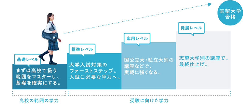 マナビスでは、担当アドバイザーと一緒に、あなたの学校・部活動などの予定を踏まえて、志望校・学力レベルから逆算して学習計画をたてるので、「部活引退前から頑張りたい!」そんなあなたにぴったりです。 また、マナビスでは、レベルや目的が細かく設定された約1000講座から本当に必要な講座だけを選択できるので、最大限の追い上げが可能です。
