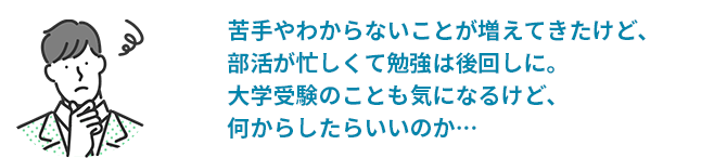 高校2年生の約半数が大学受験を意識していますが、本気で大学受験の勉強を始めるのは、高校3年生になってから。「部活が忙しいから」「まだ受験のことを考えたくない」など、なかなか動き出せていない高校2年生が多いのが実態です。