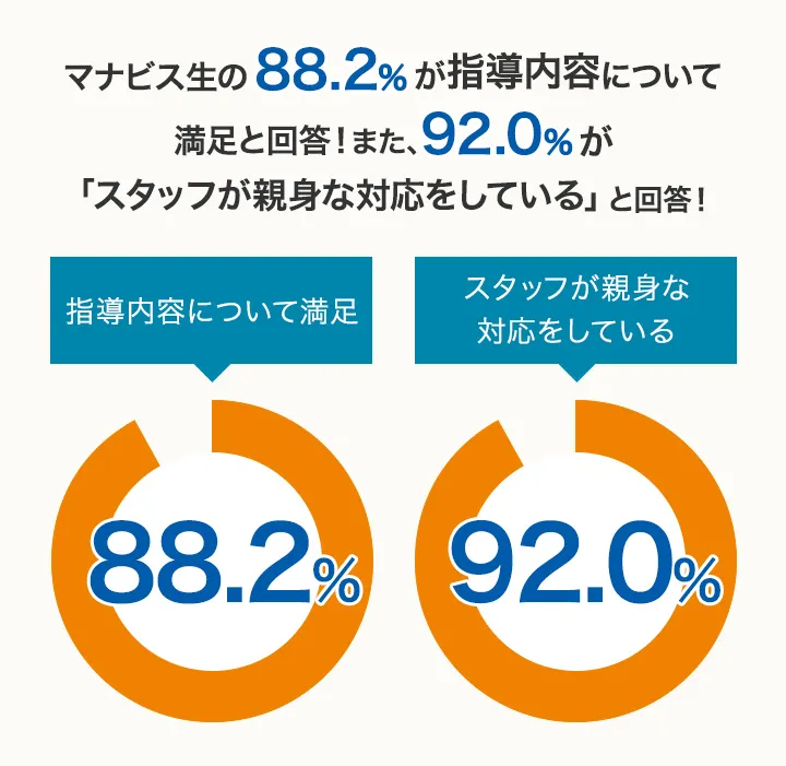 マナビスでは、大学受験のプロである社員アドバイザーが生徒一人ひとりに対して担当となり、お子様の学習・気持ちを丁寧にサポートします。